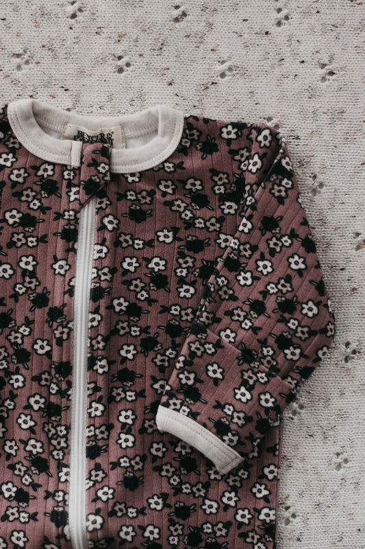 Ribbed Zip Suit | Mushroom Daisies