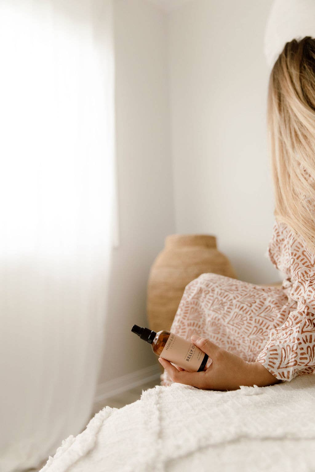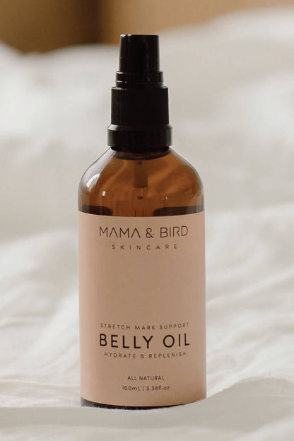 Ideal for full body application, Mama & Bird Belly Oil helps maintain the condition of the skin as it stretches throughout pregnancy.