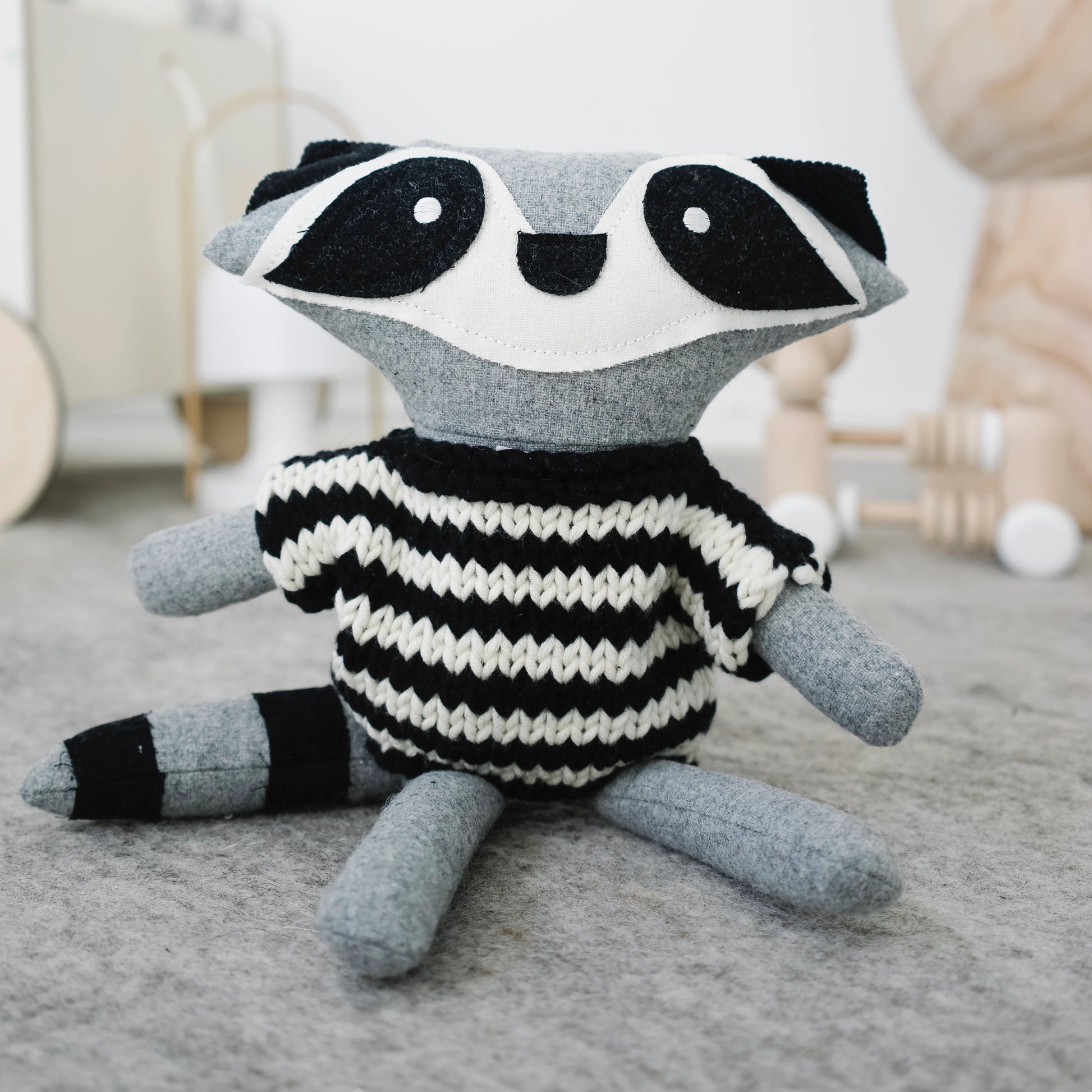 Harry has been made with the softest wool blend fabric, wearing a black and white stripe jumper, knitted in Australian merino wool. He has been designed in Australia and stands at 35cm tall.