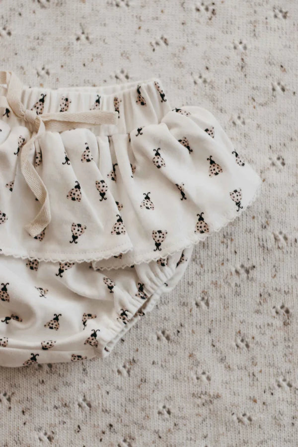 These bloomers are made from a soft cotton jersey, with an elastic waist and frill on the bum. Made in matching love bugs fabric to match across all collections.